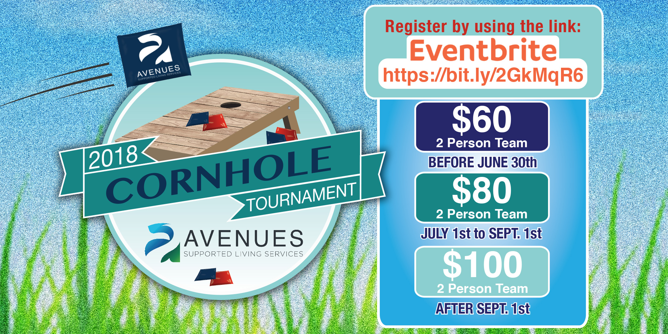 Registration & Ticket Sales Now Open – Click or cut and paste this address into your browser: bit.ly/AvenuesCornhole
